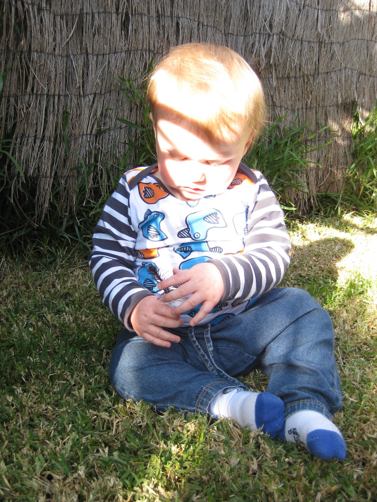 I also try and explain why I want him to do or not do different things, even though I don't know how much he understands. Like the other day when he was pulling all the MCN's (Modern Cloth Nappies) out of the basket. Even though it was frustrating to watch as they take aggggggggggggggggggges to put together, I tried to remain calm and asked him to stop and then explained why. B and I are really trying to let him explore and allow him to be naturally curious. Whenever he does something really well we give him the necessary praise and I think that this has helped especially recently with his eating and touching of finger foods.
